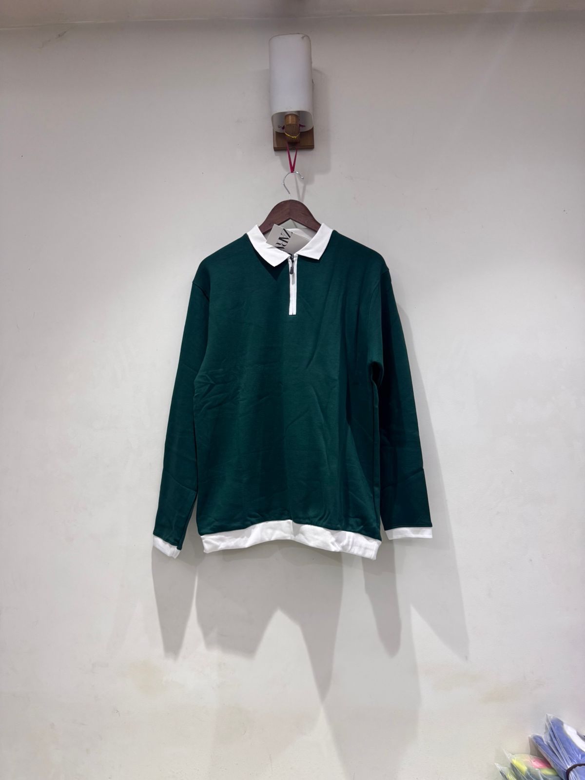 Discover the perfect blend of minimal street style and all-day comfort with the QUMAS Contrast Zip Polo – Deep Green Edition.